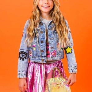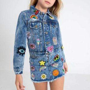 - Trendy All About The Patch Crop Denim Jacket perfect for stylish kids.